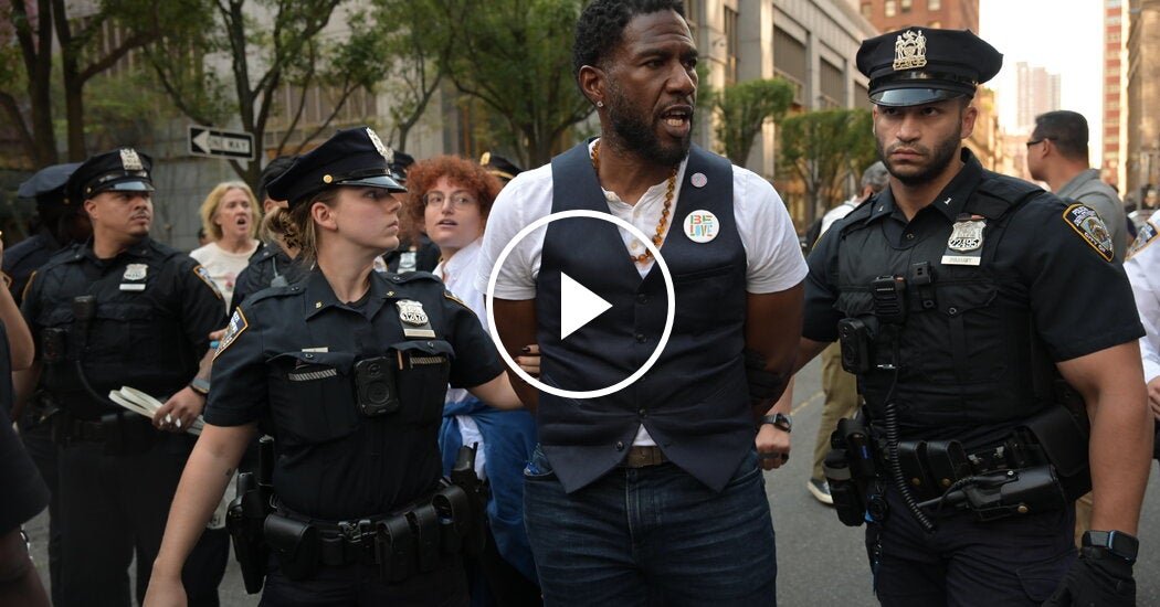 “Make a hole. Make a hole.” “1, 2, 3.” “If you impede, you’ll be under arrest. Back up.” “I’m here because ICE should be out of New York.” “You’re in violation of the law.” “I am here to ensure that we protect all our fellow constituents.” “We shall not be moved. We shall not be moved. We shall not be moved. We shall not be moved.” “We’re here, and we’re not going anywhere. And if they throw us out, we’ll come back.” “One.” “We are the people.” “Two.” “A little bit louder.” “Three.” “You agreed to be placed under arrest.” “We are the people.” “Two.” “A little bit louder.” “We want justice for our people.”