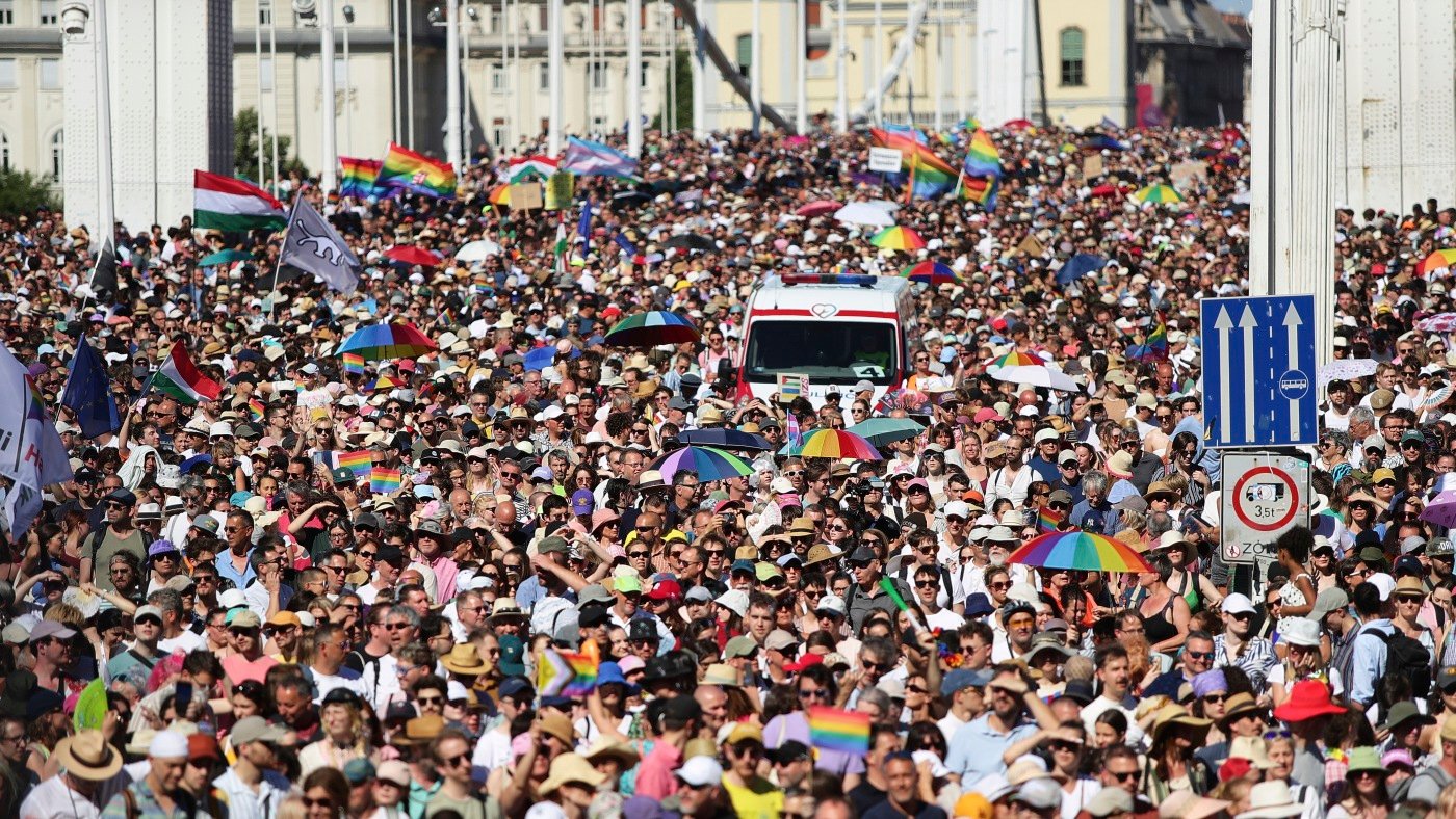 BUDAPEST, Hungary — Around 100,000 people defied a government ban and police orders on Saturday to march in what organizers called the largest LGBTQ+ Pride event in Hungary’s history in an open rebuke of Prime Minister Viktor Orbán’s government.