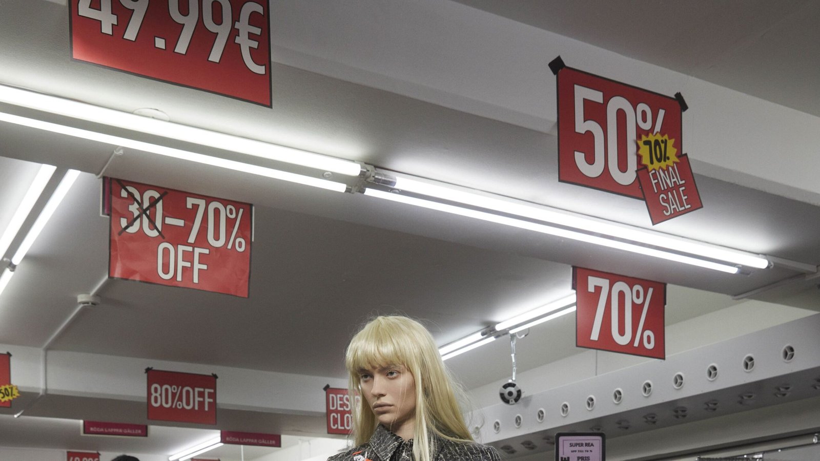 The virality of Avavav’s shows has been beneficial to the brand in terms of exposure; Karlsson launched an Adidas collaboration for spring 2025. Yet she stepped away from that format for fall, shooting a video and lookbook in what she described as a “horrific outlet setting” in which models posed like mannequins with price tags attached to their garments. “By presenting new designs in a space that already looks discarded, I wanted to highlight how fragile value has become. It’s sad, but also a little ridiculous,” the designer wrote in her show notes. Adding, on a call, that “the whole industry is built on [things being put] on sale.”