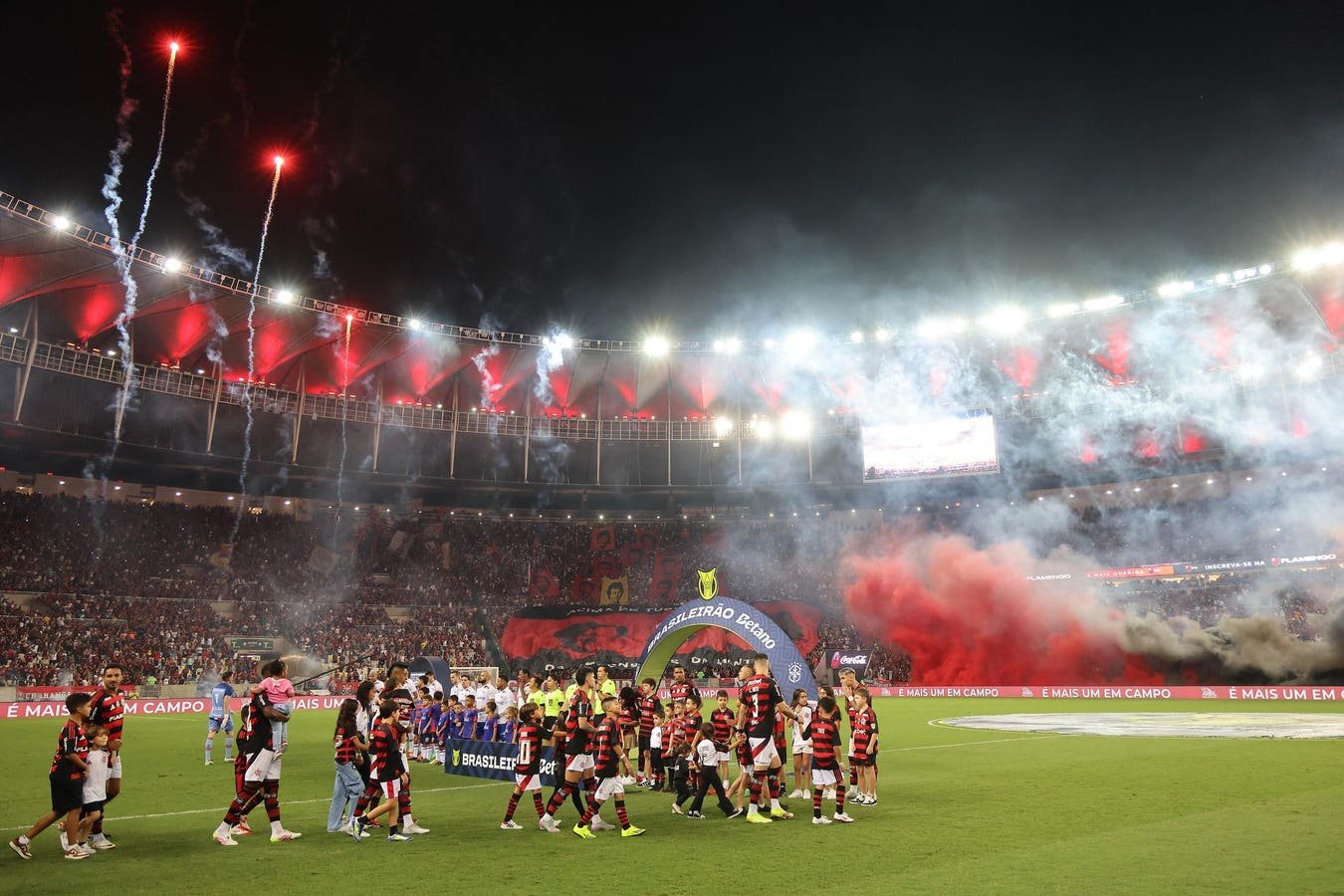 RIO DE JANEIRO, BRAZIL – JUNE 1: Flamengo players enter the pitch prior to the match between … More