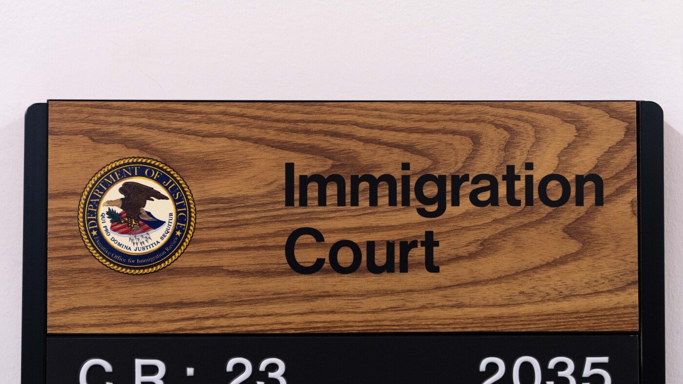 In this file photo, a sign shows the location of an immigration court in New York City. In July, 16 more immigration judges were fired.