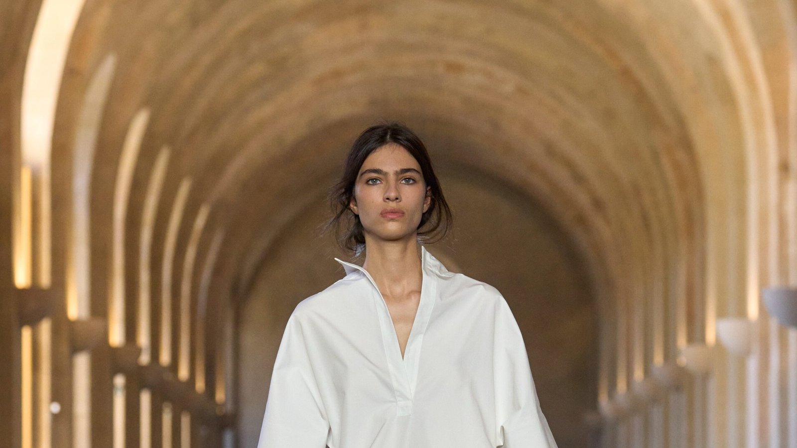 A little barefoot boy, dressed in white, ran the full length of the Orangerie at Versailles and heaved open the heavy oaken door at one end to let in the models. The symbolism of it was touching—the child was playing Simon Porte Jacquemus as a boy, the models were wearing a collection based on his family, a long line of peasant farmers from the South of France.