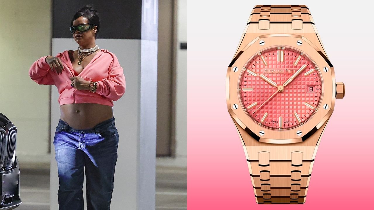 Rihanna might be the best in the biz at using a watch to elevate her already incomparable style. When she’s running out for groceries, she wears a watch typically reserved for a red carpet. She attaches pieces worth hundreds of thousands of dollars to her neck and her ankle, elevating them beyond watches to powerful fashion statements. This week, in Beverly Hills, searching for something to match her pink sweatshirt, the singer settled on an Audemars Piguet Royal Oak Self-Winding in pink gold with a matching pink Grande Tapisserie dial.