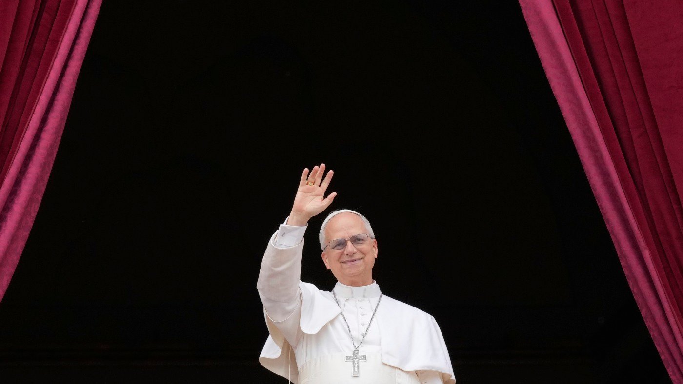 Pope Leo XIV appears on the central balcony of St. Peter’s Basilica at the Vatican to bless the crowd below on May 11, 2025.