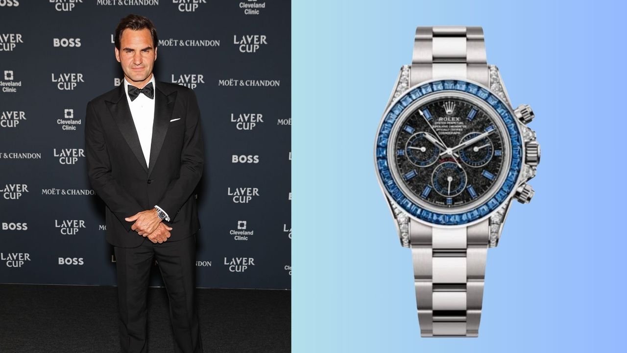 Roger Federer made quite an entrance at the Laver Cup in San Francisco this week, wearing a handsome tux with matching shades, but he reserved most of his heat for the wrist. The tennis legend wore a blue sapphire-studded, obsidian-dialed, white-gold Rolex Daytona.