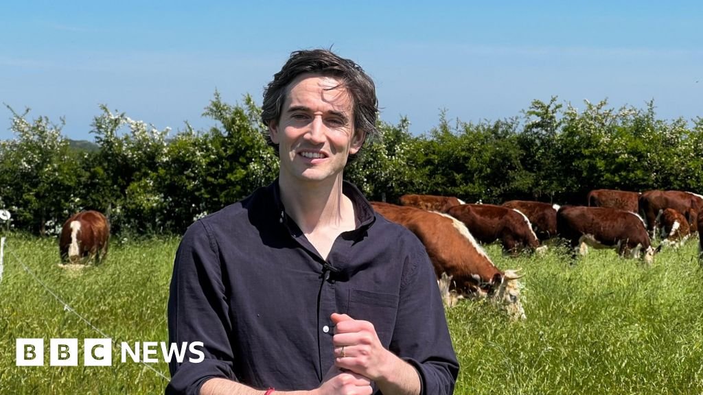 Aidan Stanley raises beef cattle entirely on untouched grass pastures at Lilliput Farm near Bath, a practice which substantially reduces carbon emissions.