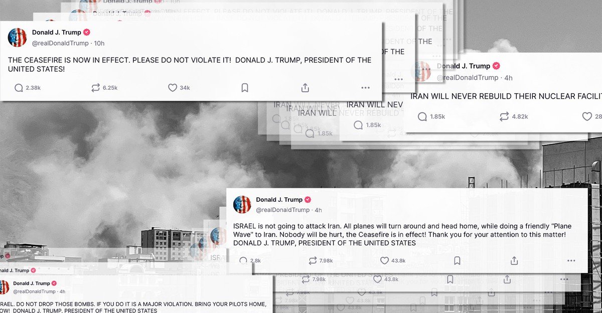 Those early-morning hours of whiplash in the most destructive phase of ran and Israel’s decades-long conflict underscored the uniquely Trumpian way that the president has managed the hostilities: with a running social media commentary that has at times been bellicose, at times conciliatory, and always bountiful with his unfiltered views of the war.