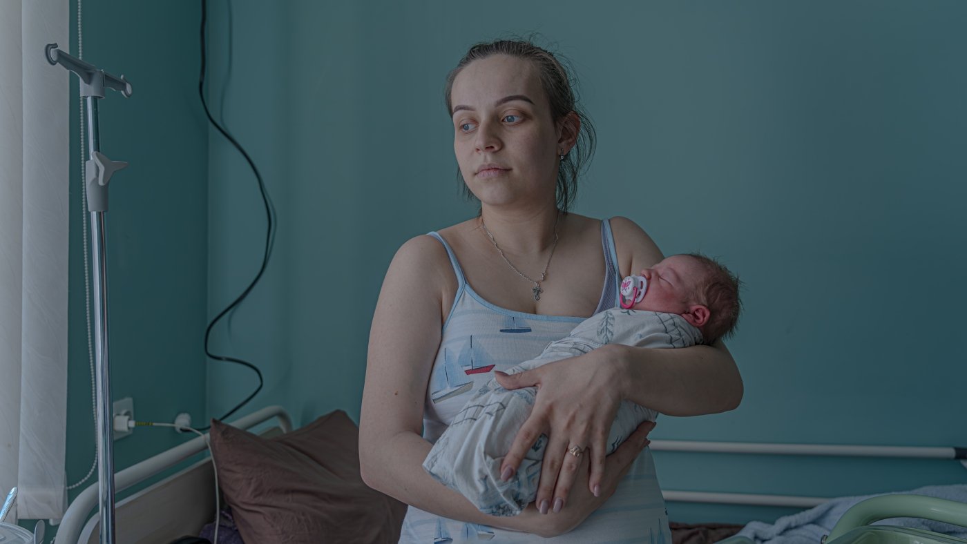 Anastasia, 24, with her daughter, born the previous day, in a room at the Sloviansk City Clinical Hospital, on March 28.