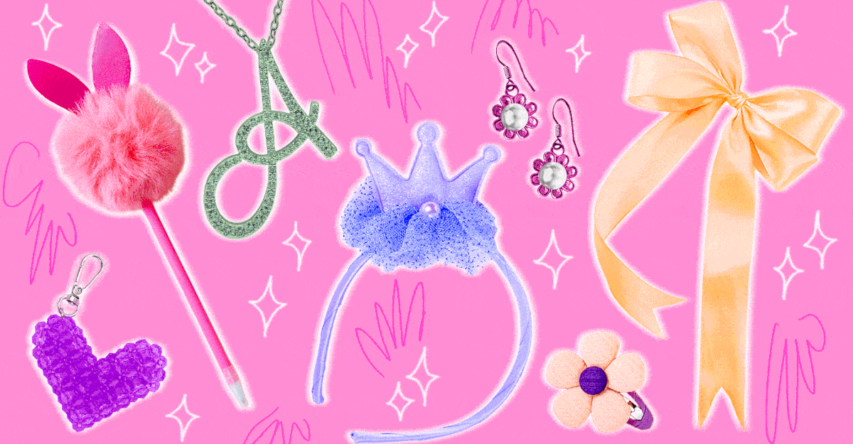 Claire’s started as a wig shop in the 1960s before merging with an accessories retailer in 1973, and then getting into the ear-piercing business and staking its claim on preteen girls. It specialized in cheaply made, kaleidoscopically tacky junk, destined to dye your skin green and then end up in a landfill. It was bad, in the aesthetic sense and the environmental sense. But Claire’s was special to me, because it was for me. It wasn’t the checkout aisle at a store for older women or the costume corner of a kids’ store. It wasn’t for impressing boys; it was for impressing girls. It felt like a clubhouse. I can still remember how it smelled, like chemicals and vanilla cookies. I remember the purple walls, covered floor-to-ceiling in all the instruments of tweenage self-expression: charm bracelets, toe rings, impractically small purses, hair clips made to look like gummy bears or butterflies. I remember how easy it was to buy a pair of clear-lensed glasses or a flimsy flower crown and try on a new identity, how Claire’s made figuring out who you were and what you liked feel fun and low-stakes.