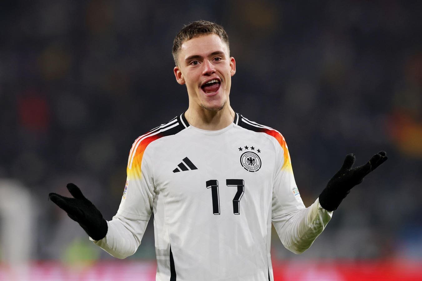 FREIBURG IM BREISGAU, GERMANY – NOVEMBER 16: Florian Wirtz of Germany celebrates scoring his team’s … More